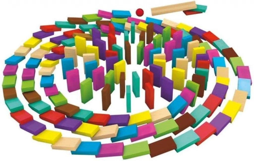 Ahşap dominoları dikkatle diz, şeklini oluştur. Heyecana sen de ortak ol!