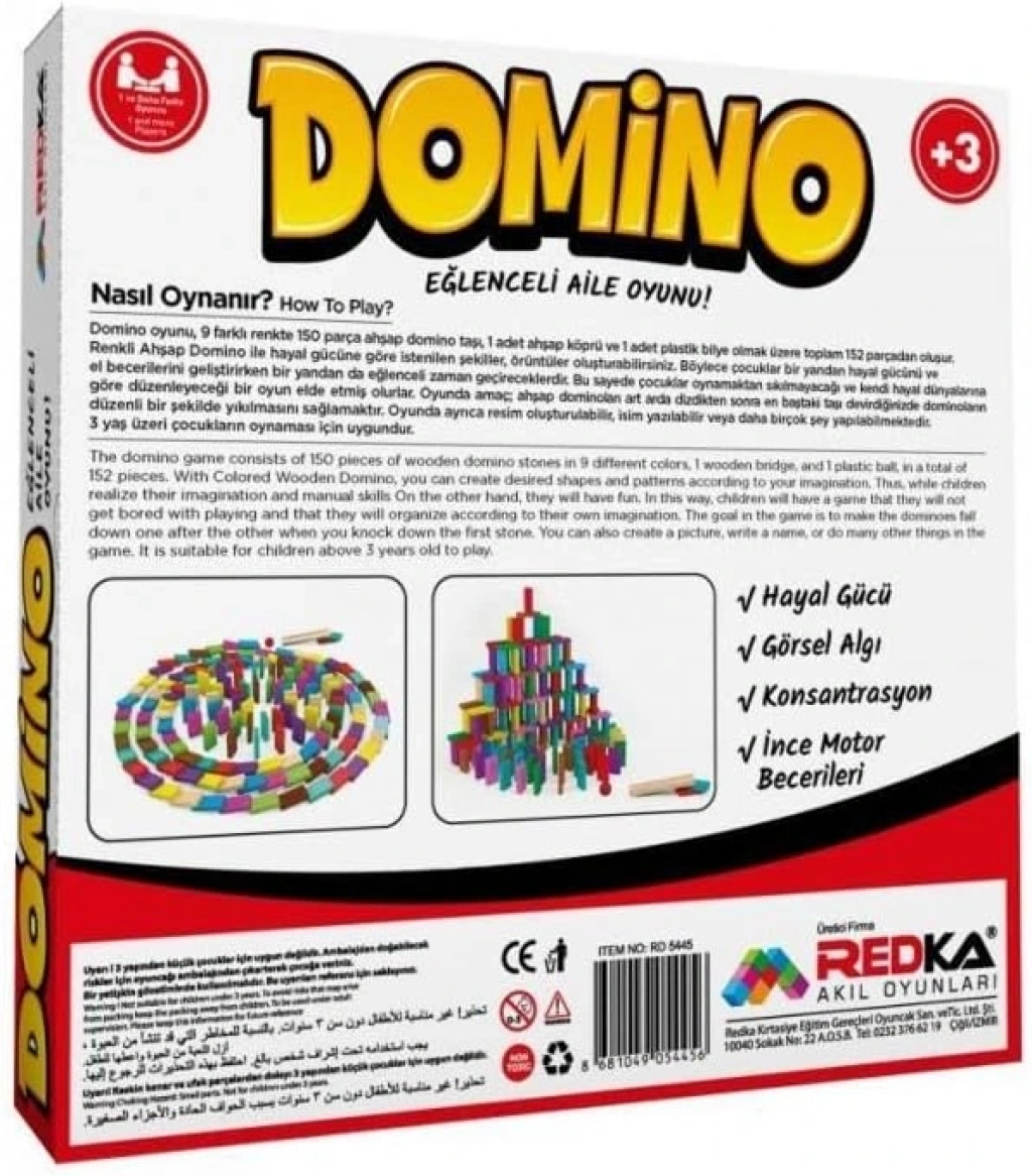 Rengarenk ahşap dominolar, birbirinden farklı eğlenceli örüntüler, şekiller ve tasarımlar yapmaya olanak tanır. REDKA rengarenk ahşap dominolarla Heyecan ve Dikkat bir arada eğlence dorukta!