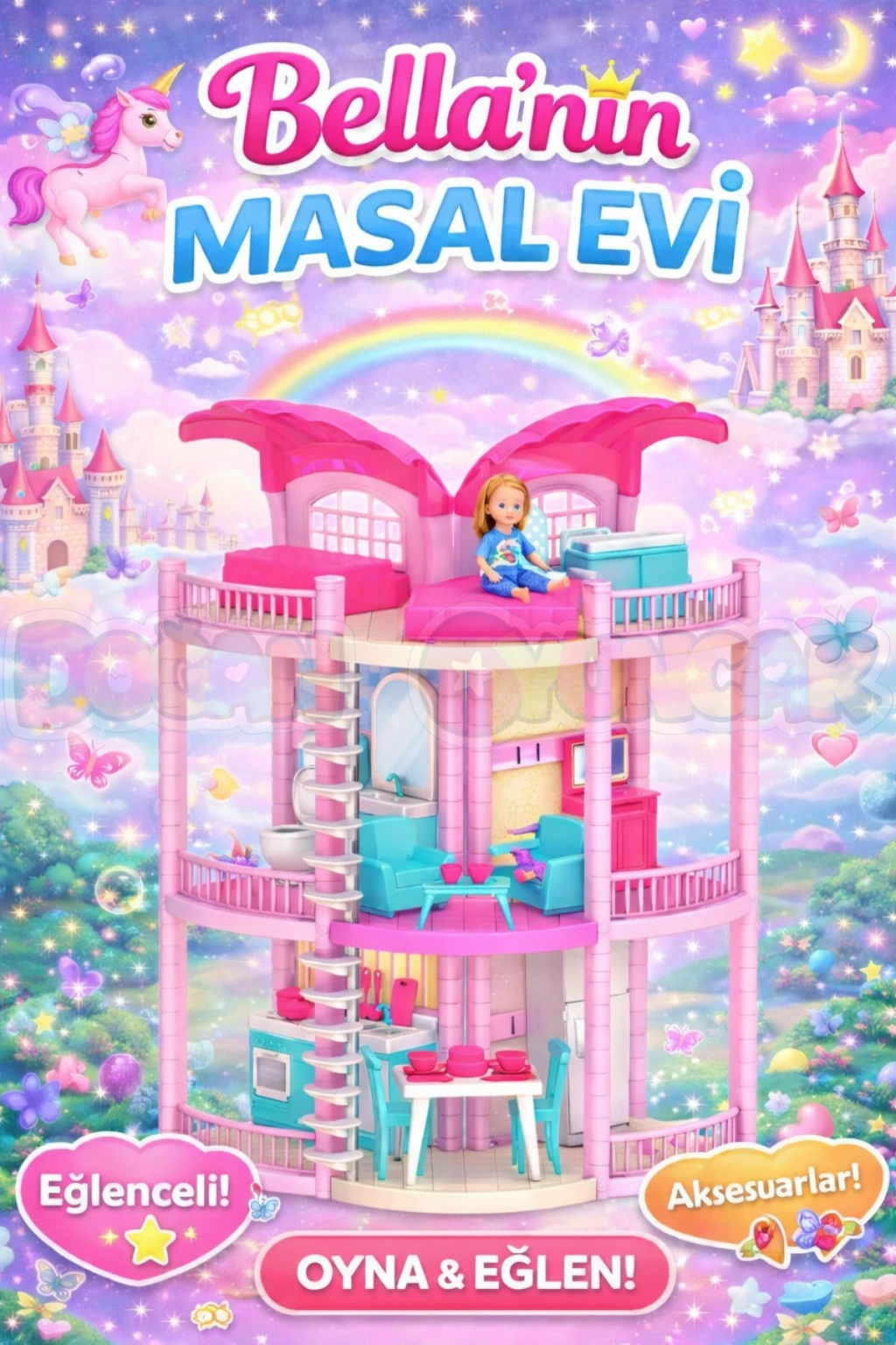 • Bella'nın Masal Evi - Bella Oyuncak Ev - Barbie Ev Seti - Barbie Ev Seti - Bellanın Masal Evi - Bella 3 Katlı Evi