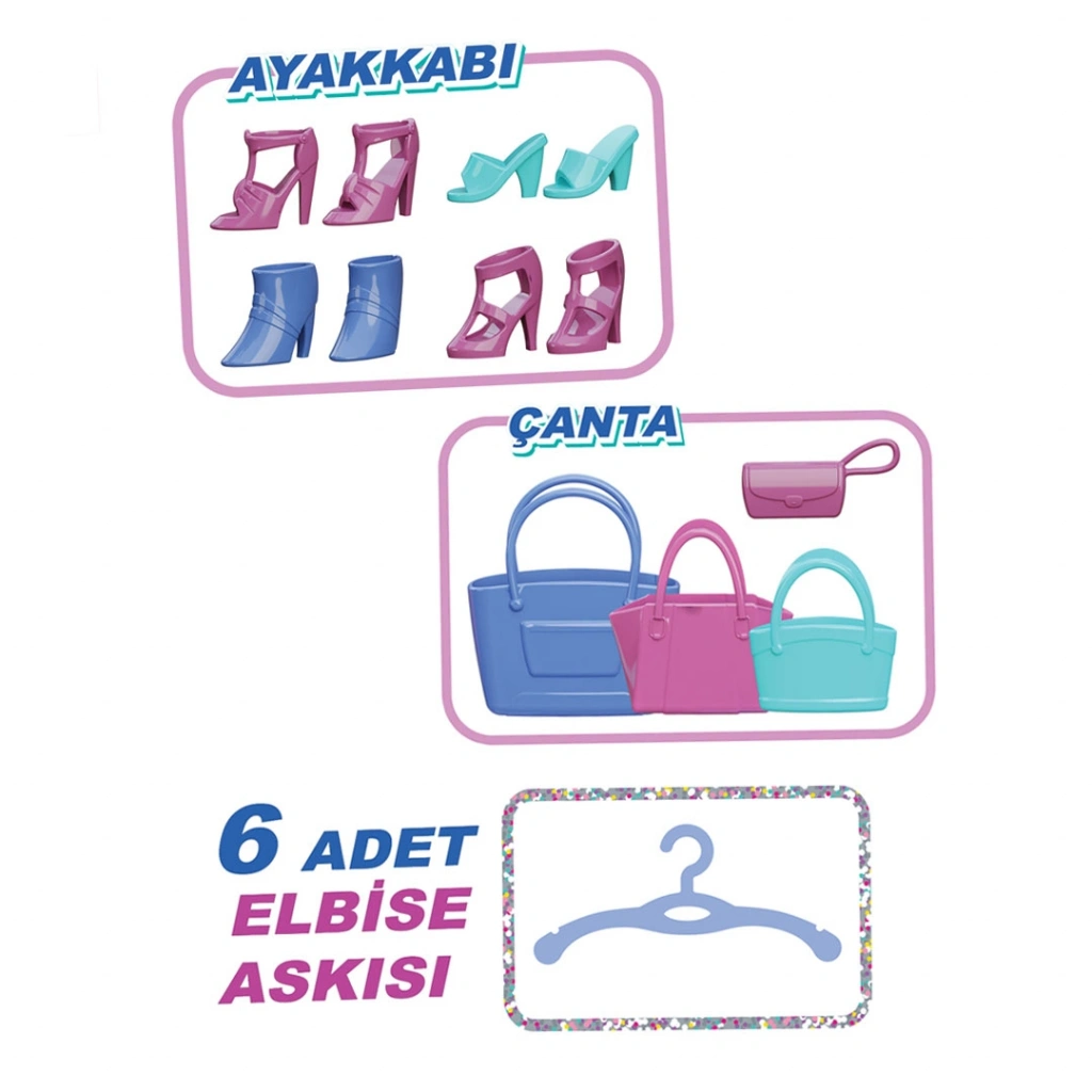 • İçinde 4 çift ayakkabı, 6 askılık, 3 çanta bulunmaktadır.
