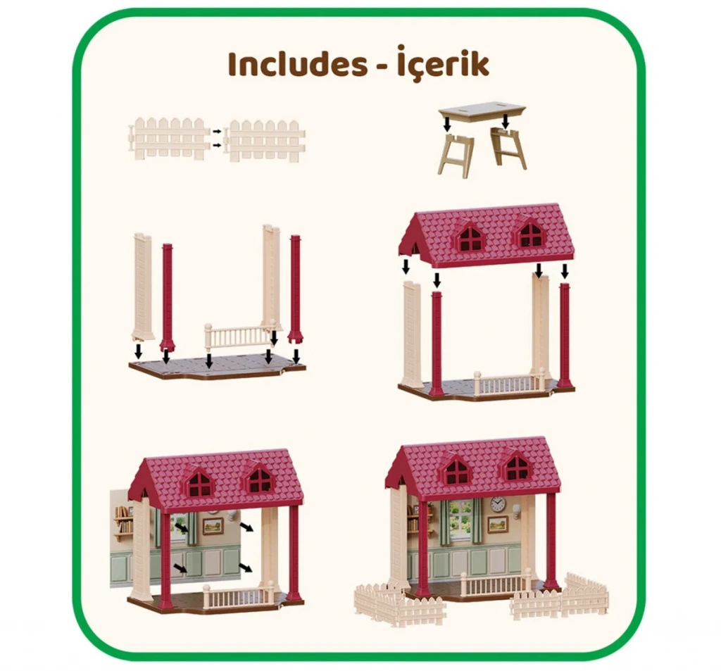 İki katlı ve çok bölmeli tasarımı sayesinde çocuklar ev yaşamını keşfederken hayal güçlerini özgürce kullanabilir. Alt ve üst katlarda yer alan farklı yaşam alanları, günlük hayatı canlandırmaya olanak tanır ve oyunları daha gerçekçi hale getirir.