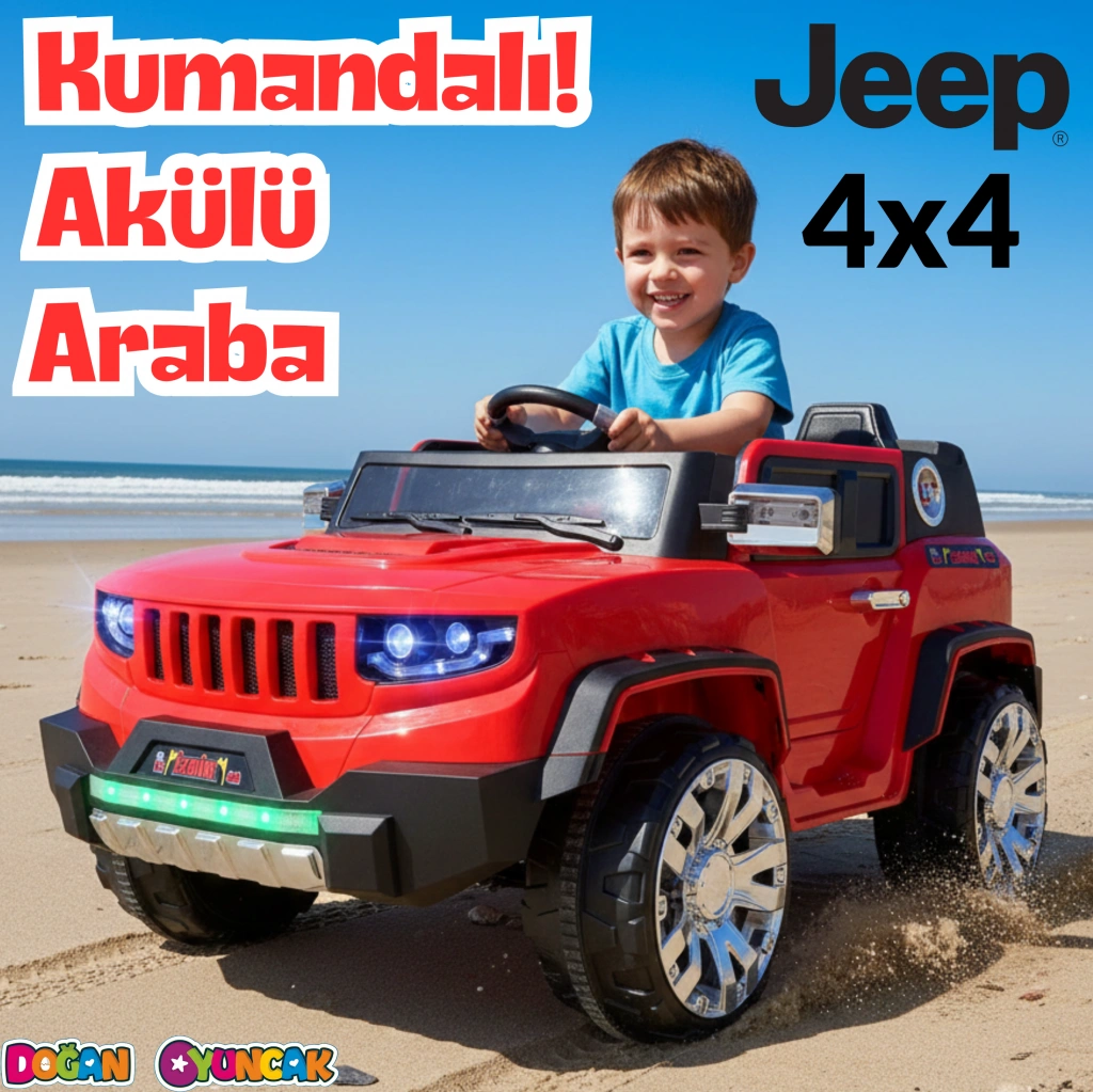 Fenomen Kırmızı Uzaktan Kumandalı 4X4 12 Volt Çift Kişilik Akülü Araba - RC Jeep 4x4 Akülü Araba