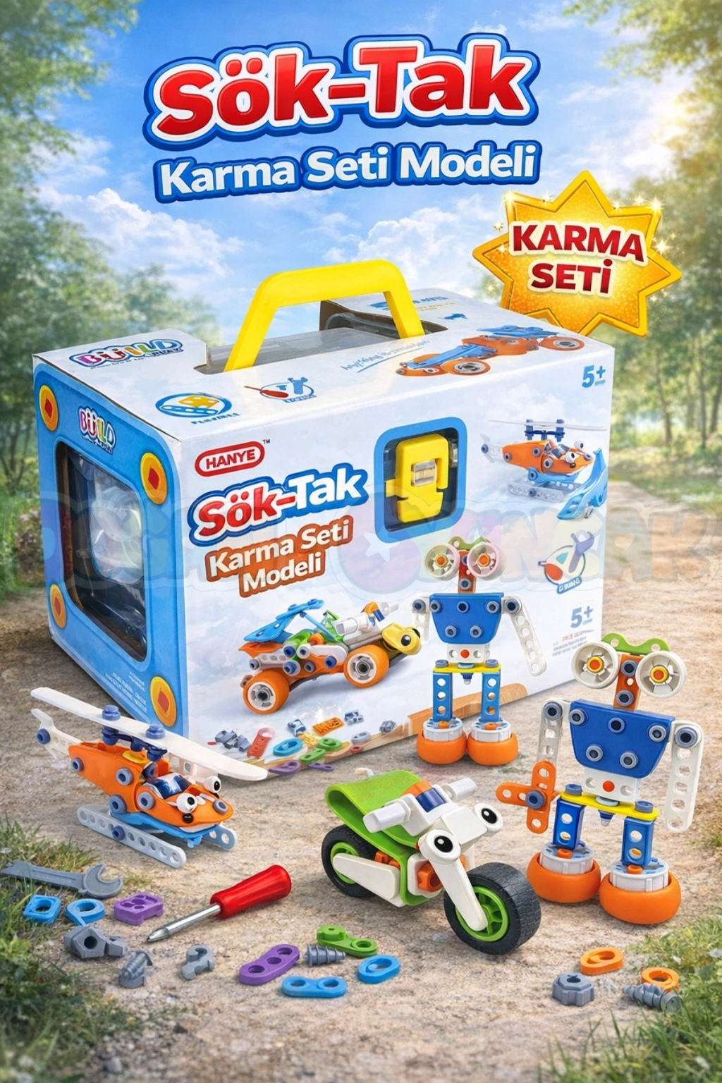 Sök-Tak Karma Seti Modeli, çocukların hem eğlenip hem de öğrenmesini sağlayan harika bir yapım setidir. Farklı model seçenekleri ile tek bir kutuda birden fazla oyuncak deneyimi sunar.