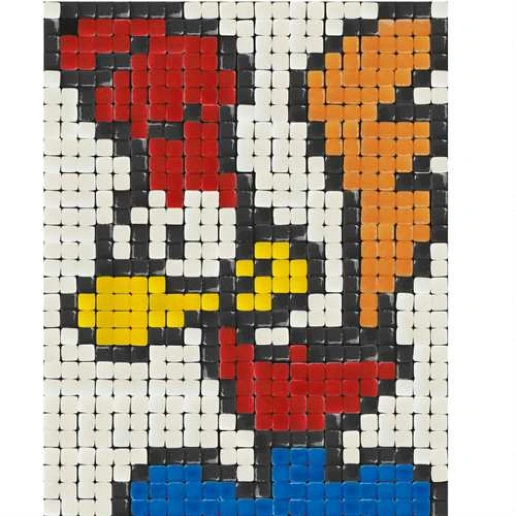 Cam Mozaik basılmış desenin uygun çerçeveye yerleştirilmesinden sonra renkli mozaik taşlarının