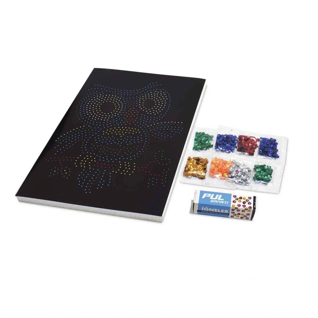 Setin içerisinde; 1 adet strafor, renkli pullar, köreltilmiş toplu iğneler, yapım kılavuzu bulunmaktadır.