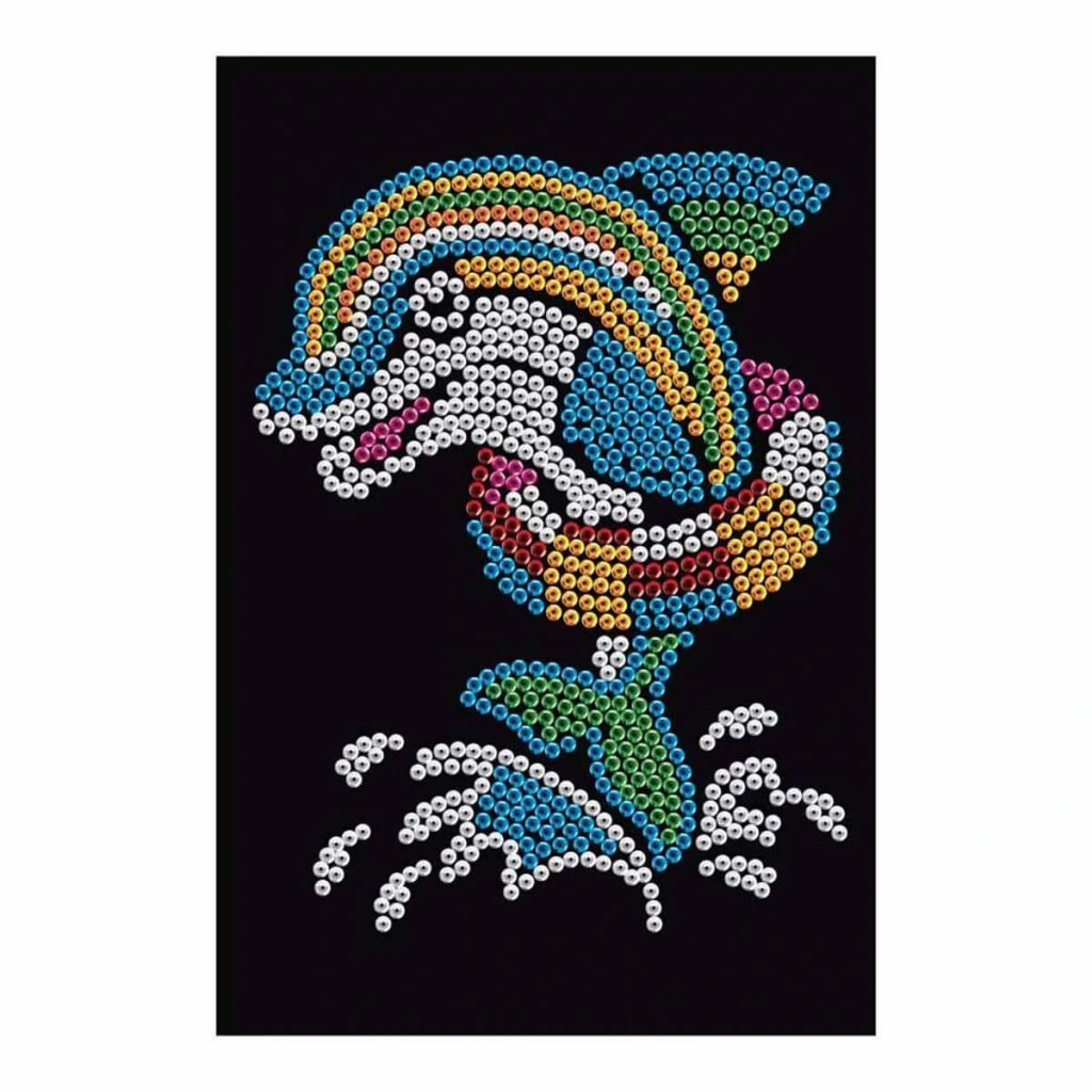 Görseli toplu iğneyle strafor üzerine yerleştir, kağıt üzerinde bulunan renkli noktalara aynı renge sahip pulları işle! Pulları kullan, şeklini oluştur!