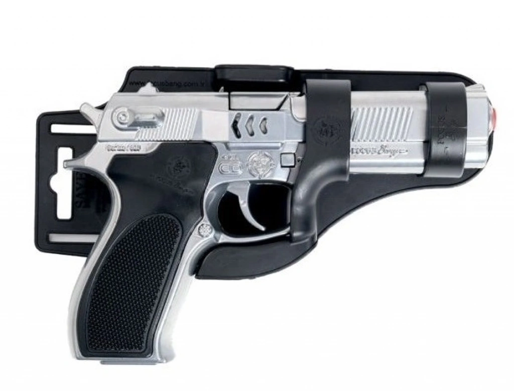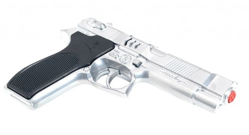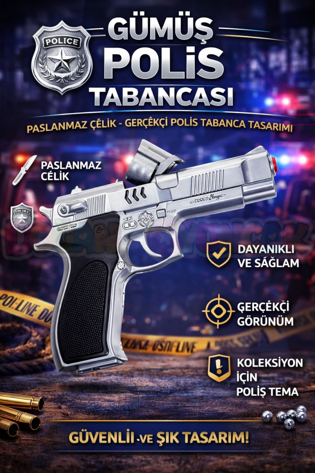 Mantar Patlatan Metal Çelik Polis Tabancası - Metal Polis Silahı Çelik Mantar Silahı