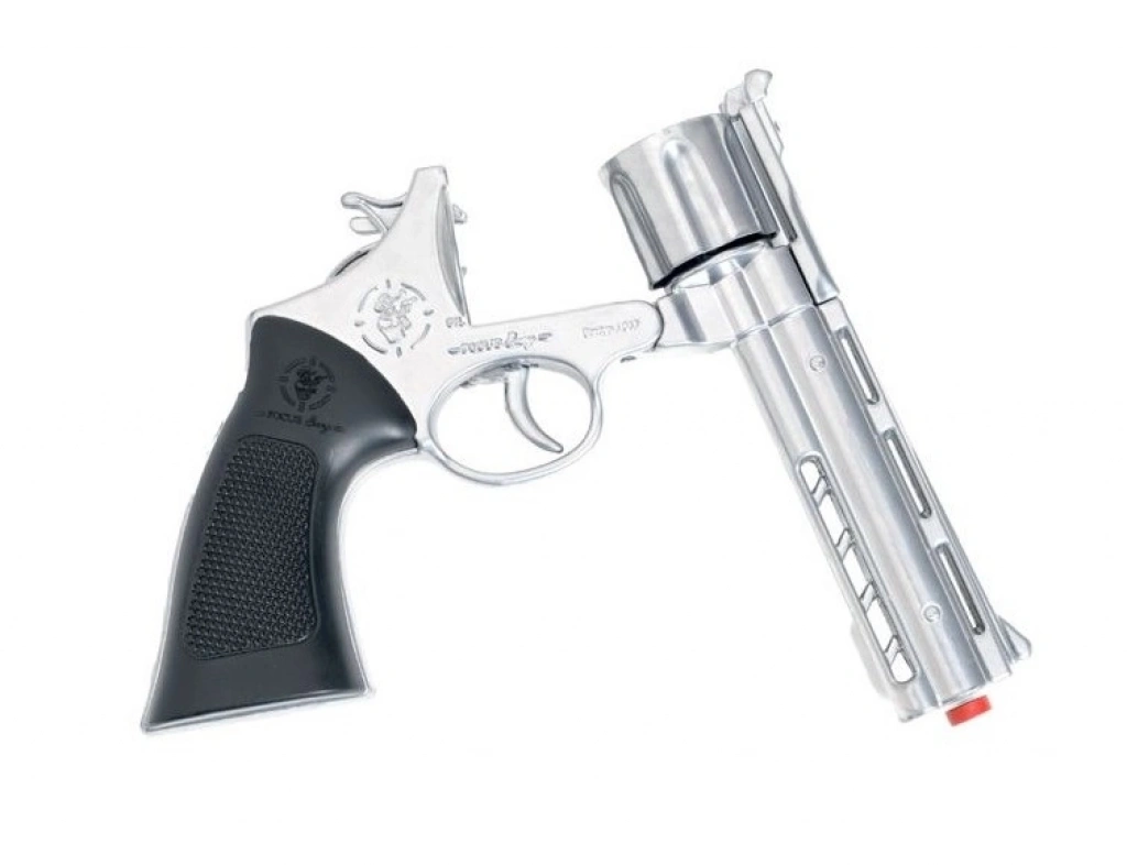 Mantar Patlatan Metal Gümüş Kovboy Tabancası - Metal Kovboy Silahı Çelik Mantar Silahı