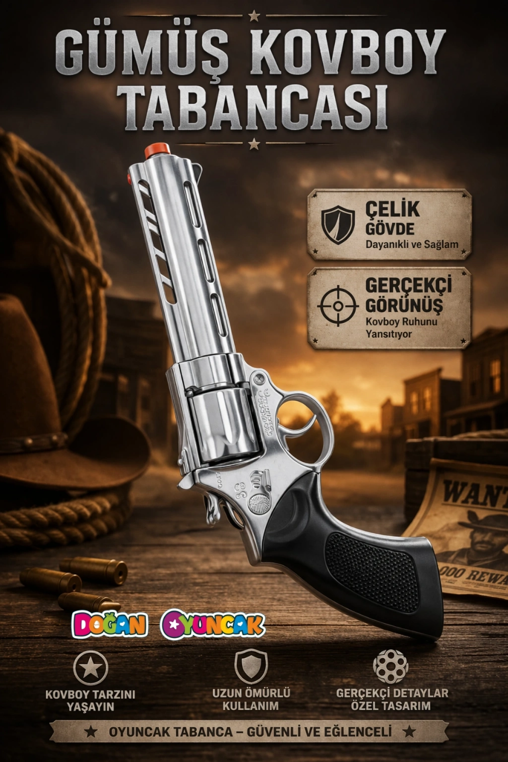 Kovboy ve polis temalı farklı model seçenekleri ile sunulan bu ürün, estetik görünümü ve kaliteli hissiyatı bir arada sunar.