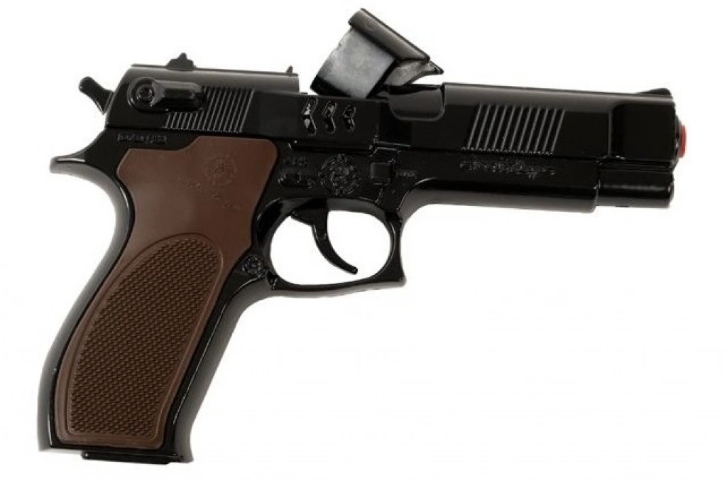 Mantar Patlatan Metal Siyah Polis Tabancası - Metal Polis Silahı Çelik Mantar Silahı