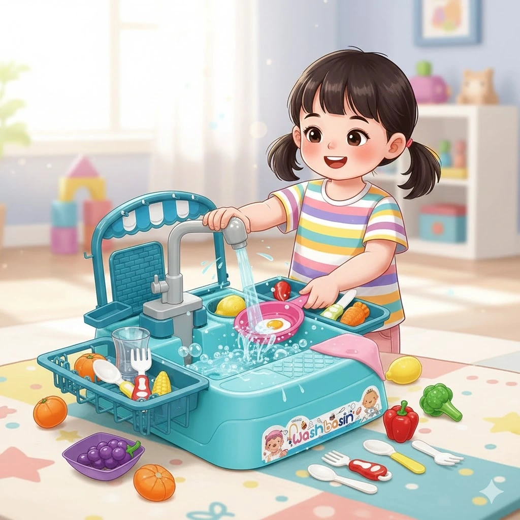 • Mavi Mutfak Lavabosu Oyun Seti ile tüm kirli bulaşıklara elveda!