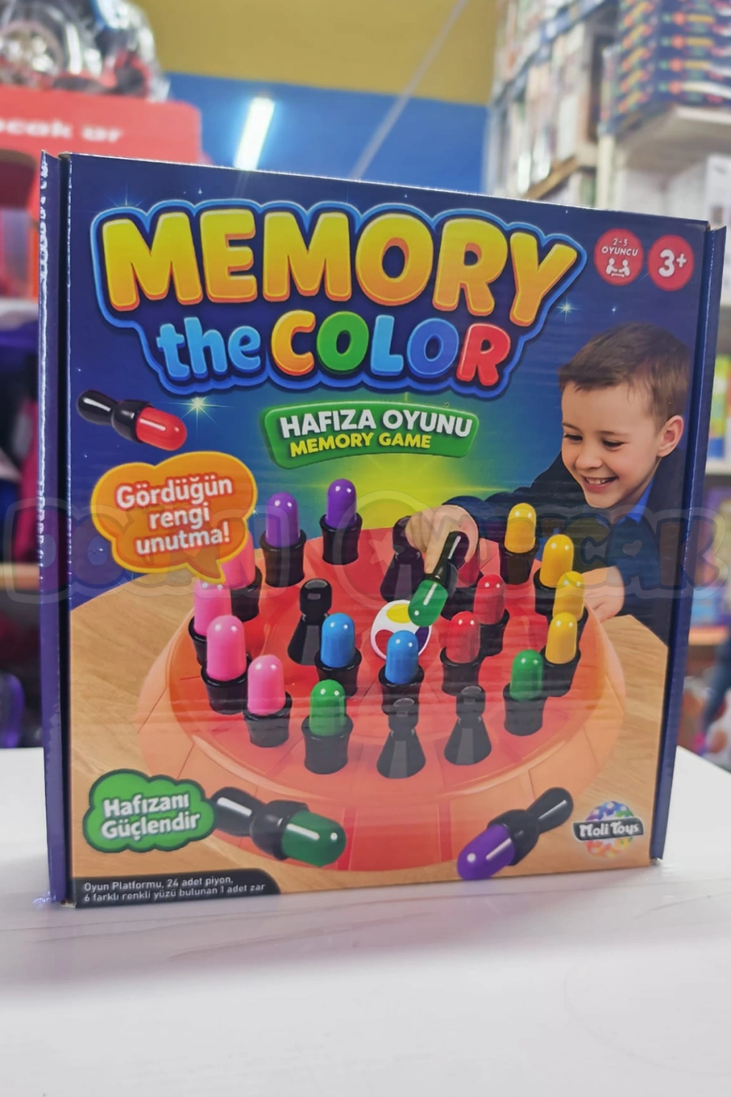 6 farklı renkli yüzü bulunan 1 adet zarı bulunur