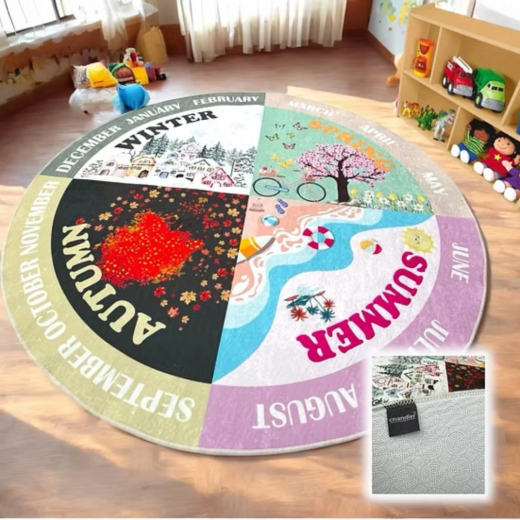 Mevsimler ve Aylar Eğitici Çocuk Halısı 140 cm. - Mevsimler Anaokulu Halısı - Yuvarlak Kreş Halısı