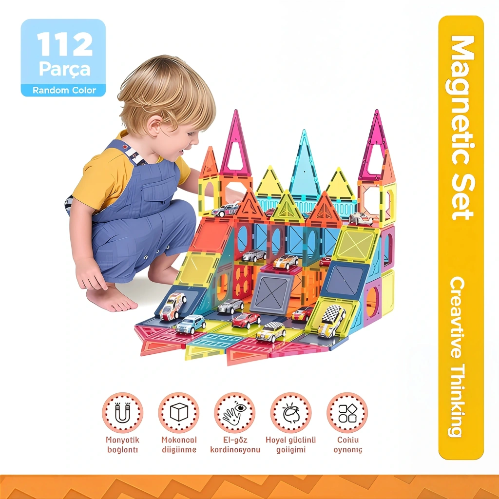 Magnetic Tiles 112 Parça ile çocuğunuzun yaratıcılığını ve motor becerilerini geliştirin!