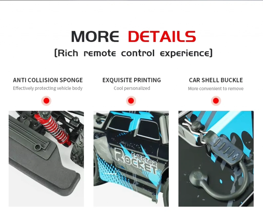 Patlamaya dayanıklı PVC gövdesi, aracın dayanıklılığını artırırken, 2,4 GHz frekansla uzun menzilli kontrol sağlar. Yüksek hızda sürüş keyfi sunan bu model, 36 km/saat'e kadar hızlanabilir ve tam oransal senkron kontrol sistemi sayesinde ileri ve geri hareket, sağ ve sol dönüş ile fren kontrolünü mükemmel şekilde gerçekleştirir.