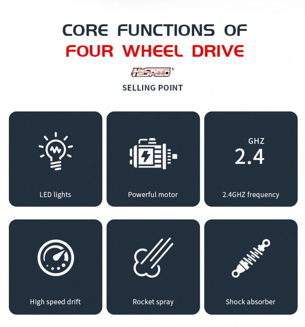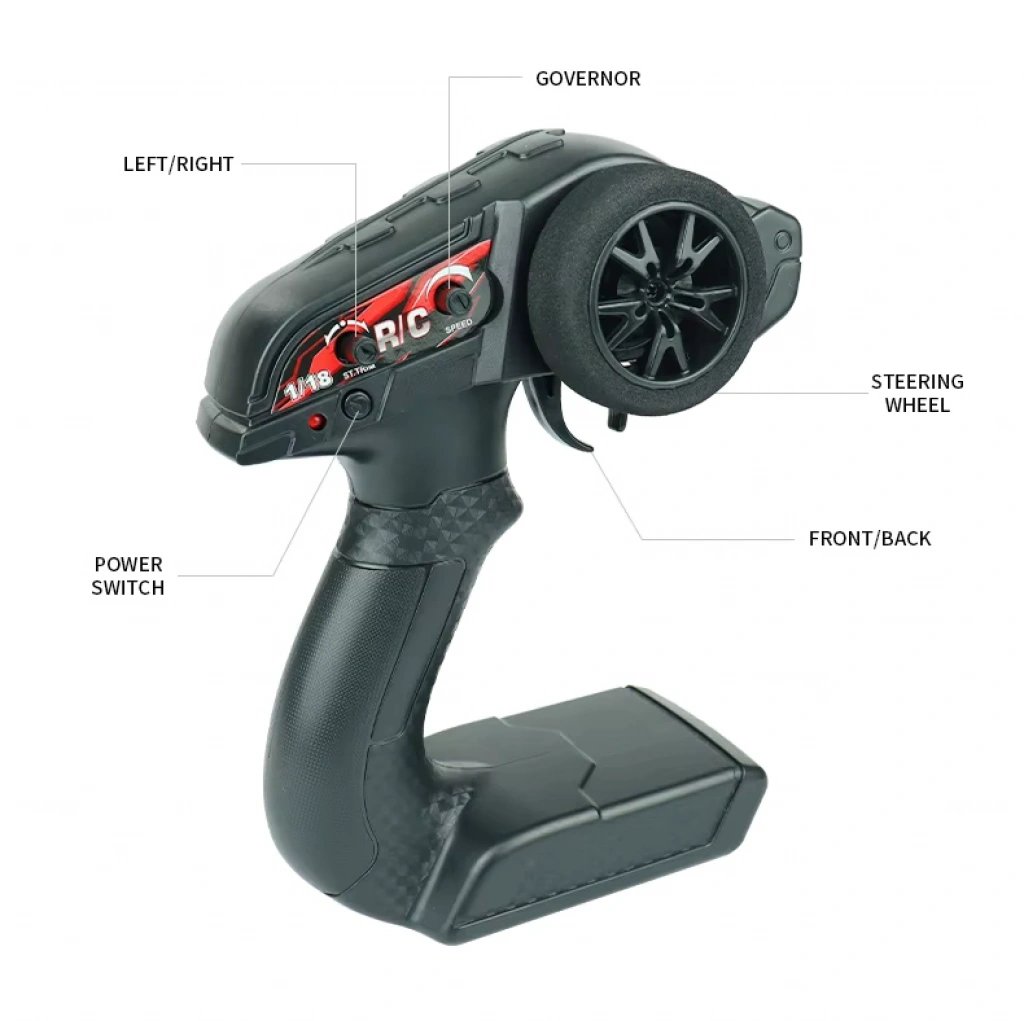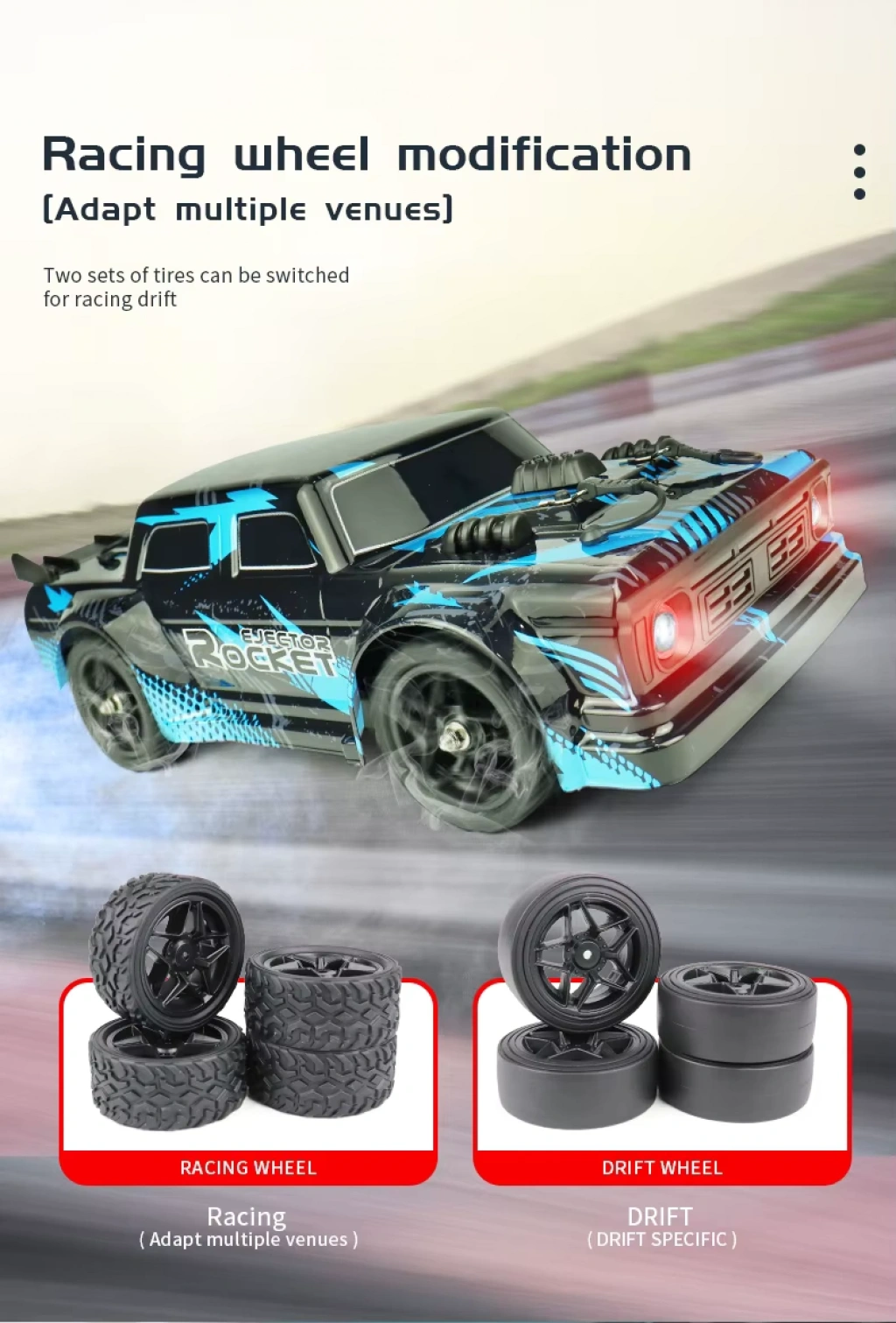 Ayrıca, aracın 4 drift tekerleği ve 4 yarış tekerleği bulunması, farklı zeminlerde mükemmel performans sağlar. Tekerlekler arasındaki geçiş, sürüş sırasında size özgürlük ve heyecan sunar.