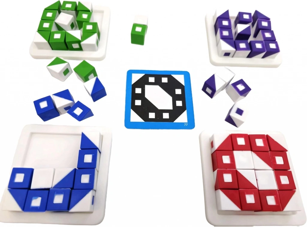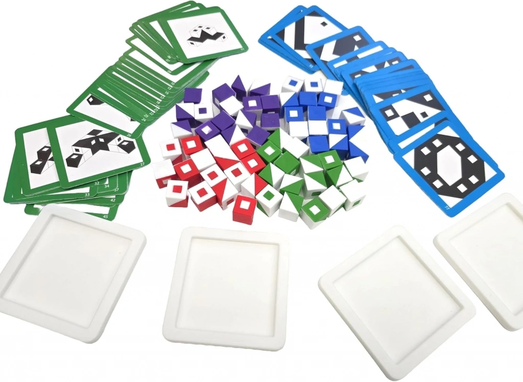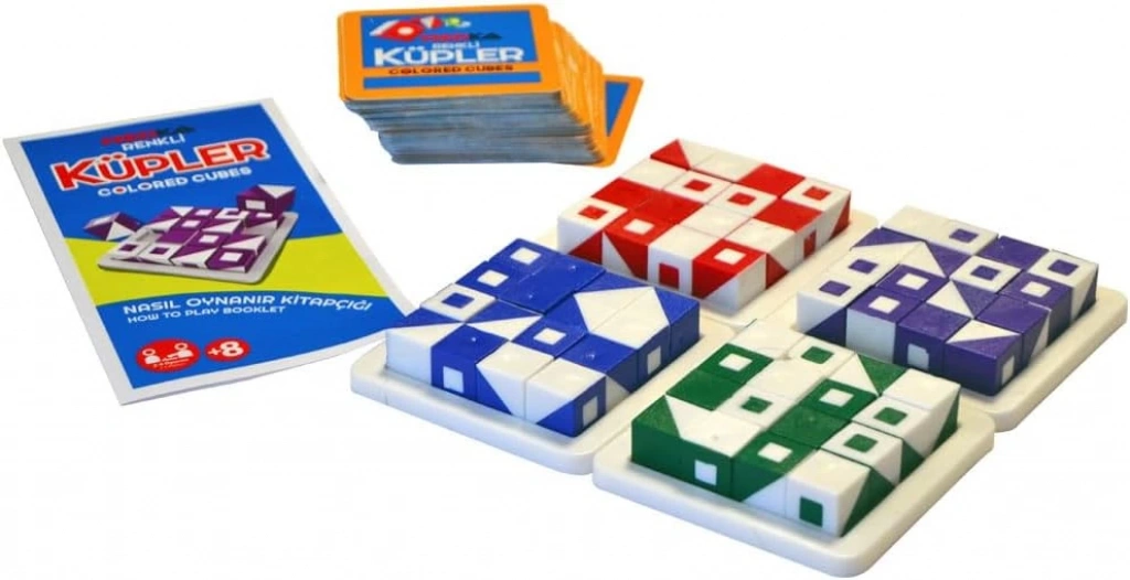 Kutu İçeriği: 77 adet oyun kartı, 4 adet oyun platformu, 4 set renkli küp (1 set 16 adet küpten oluşur.),Nasıl oynanır kitapçığı
