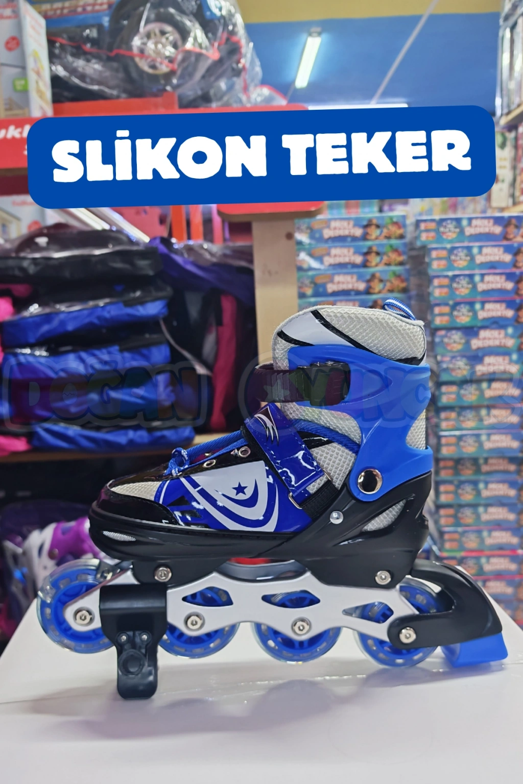 Slikon Tekerli Mavi Paten 35-38 Numara - Silikon Tekerli Paten Alıştırma Pateni - Silikon Tekerlekli
