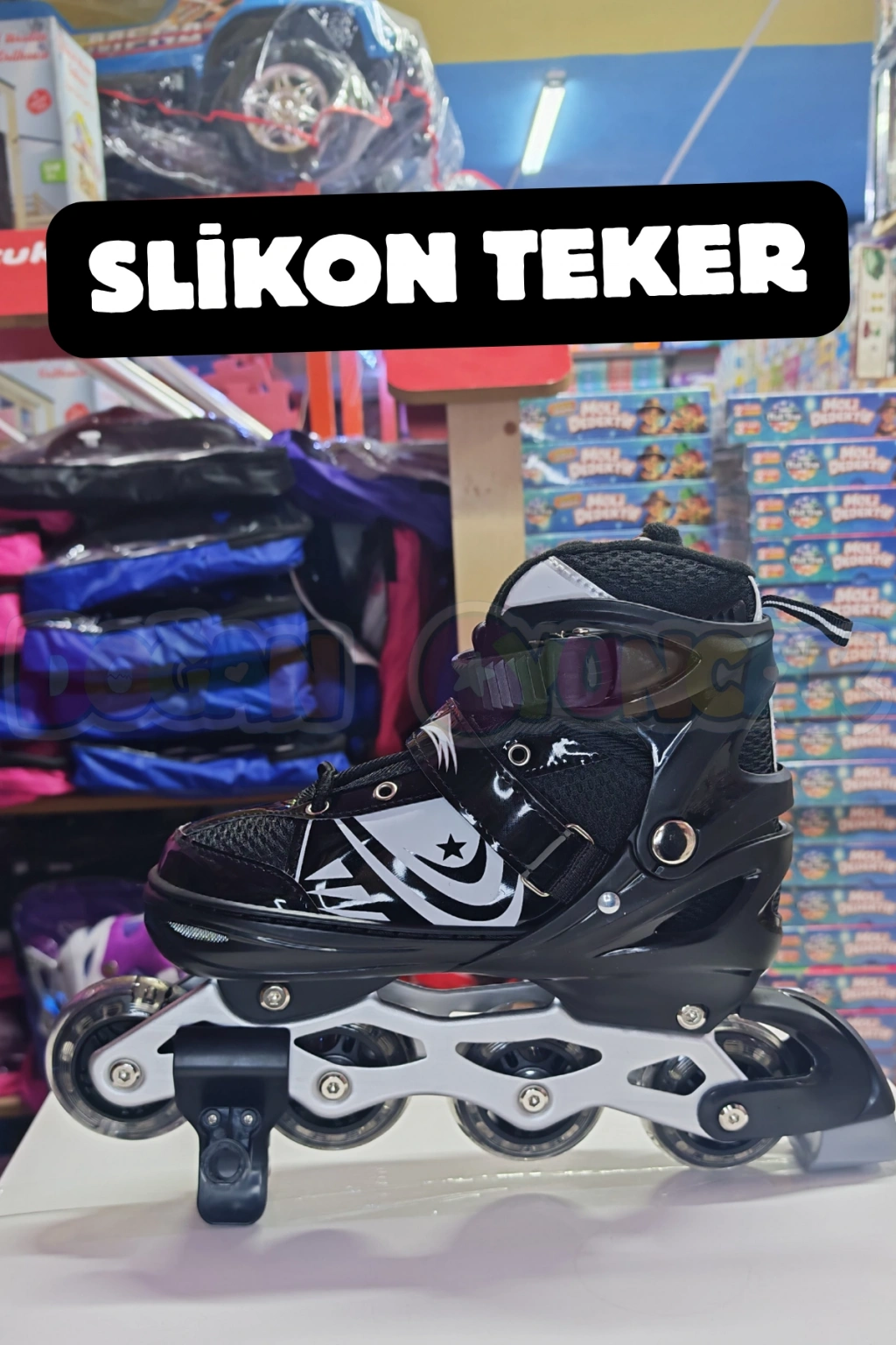 Slikon Tekerli Siyah Paten 39-42 Numara - Silikon Tekerli Paten Alıştırma Pateni - Silikon Tekerlekli