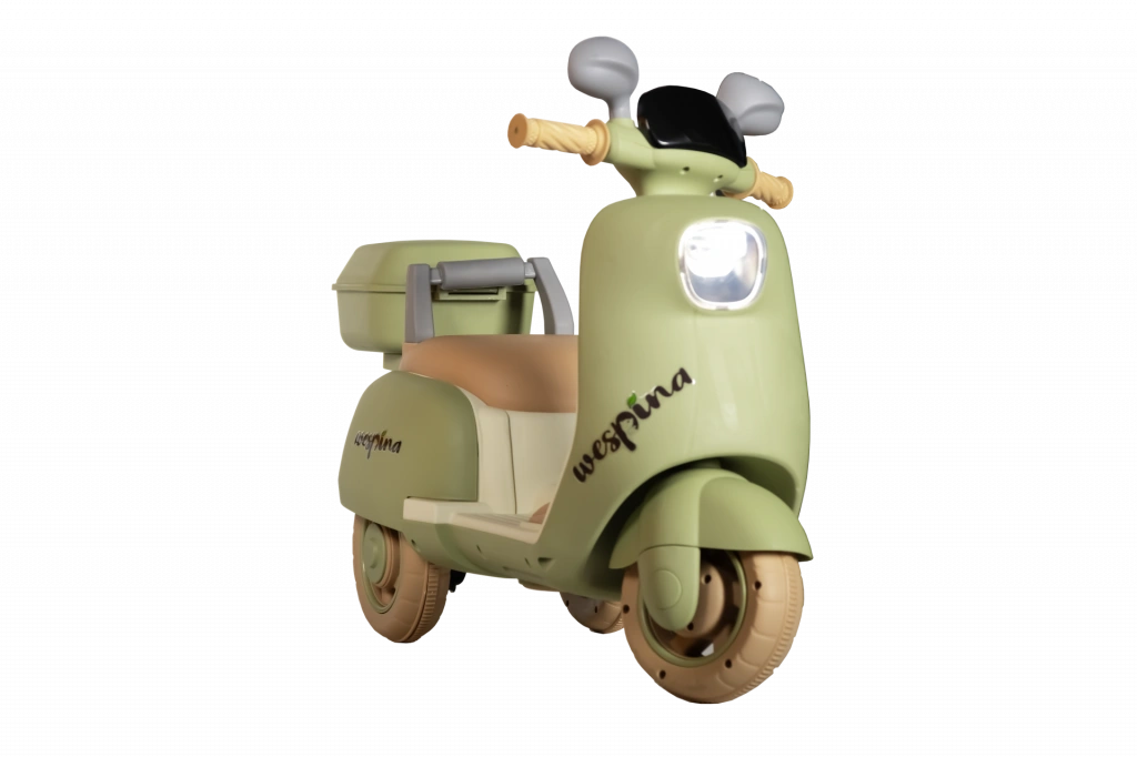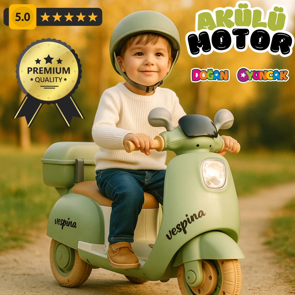 Wespina Uzaktan Kumandalı 3 Tekerli Akülü Motor Yeşil - Akülü Çocuk Motor Müzik Çalarlı Uzaktan Kumandalı Motor