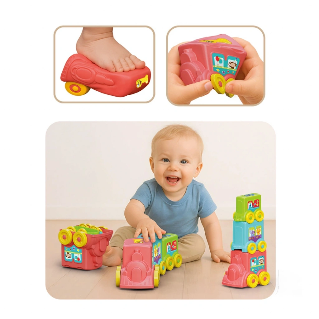 Yumuşak Aktivite Treni - Bebek Oyuncakları - Üst Üste Dizme Eğitici Oyuncak - Soft Lego Tren Oyuncakları
